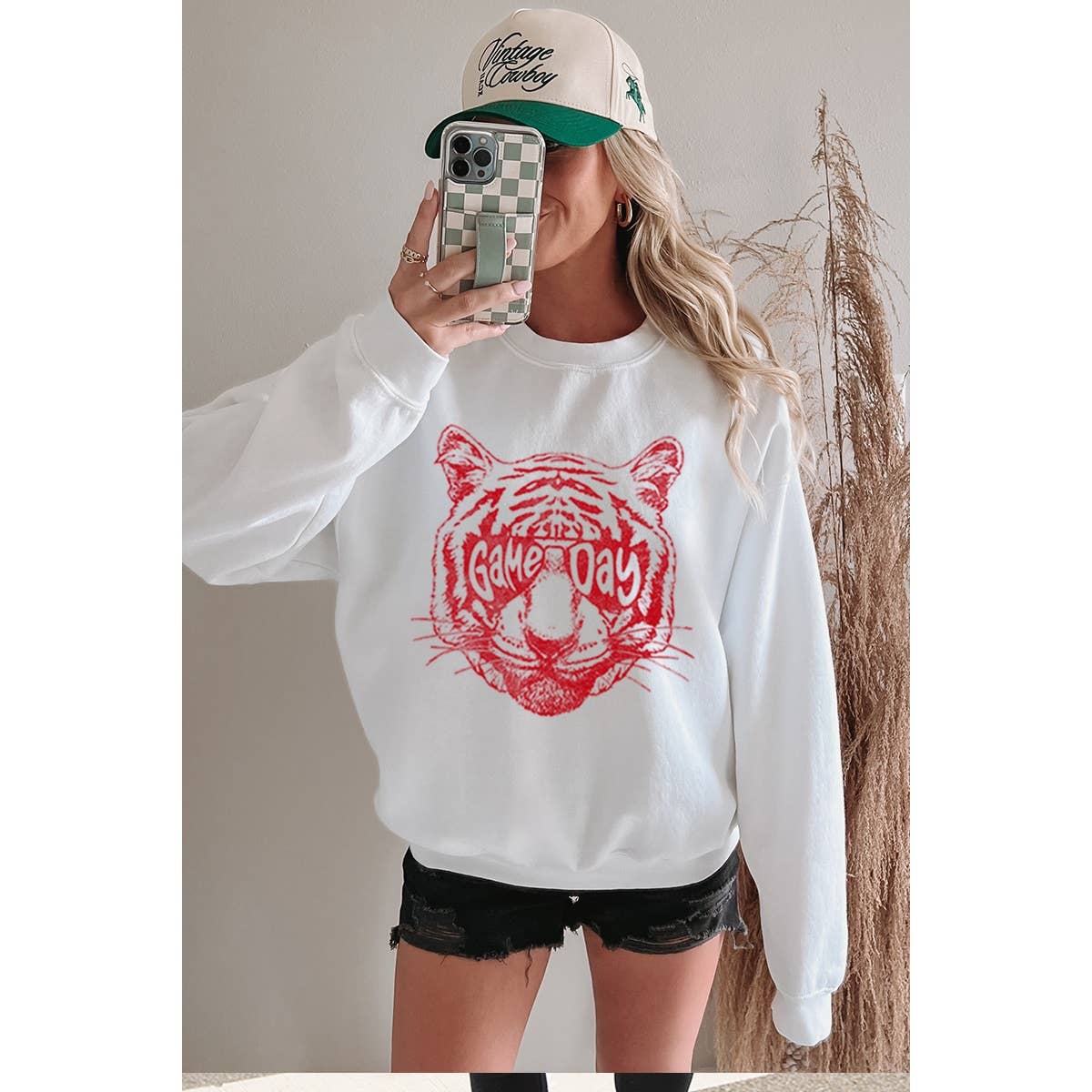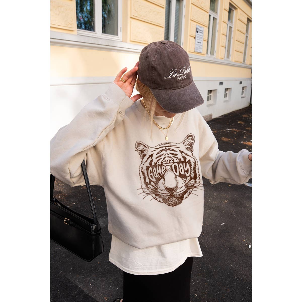 Get ready to cheer in style with our Vintage Game Day Tiger Sweatshirt! This cozy, oversized sweatshirt in sandy tones is perfect for crisp fall days and spirited home games. Comfortable and effortlessly cool, it’s your go-to for showing team pride while staying snug and relaxed. Wear it, roar loud, and let the good times roll!