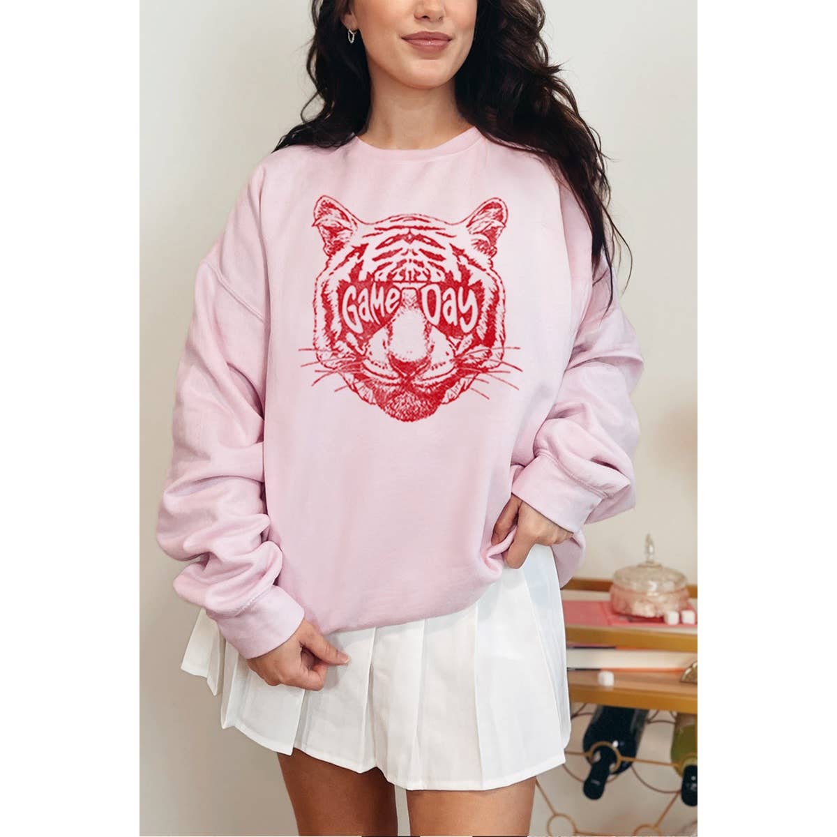 Get ready to cheer in style with our Vintage Game Day Tiger Sweatshirt! This cozy, oversized sweatshirt in sandy tones is perfect for crisp fall days and spirited home games. Comfortable and effortlessly cool, it’s your go-to for showing team pride while staying snug and relaxed. Wear it, roar loud, and let the good times roll!