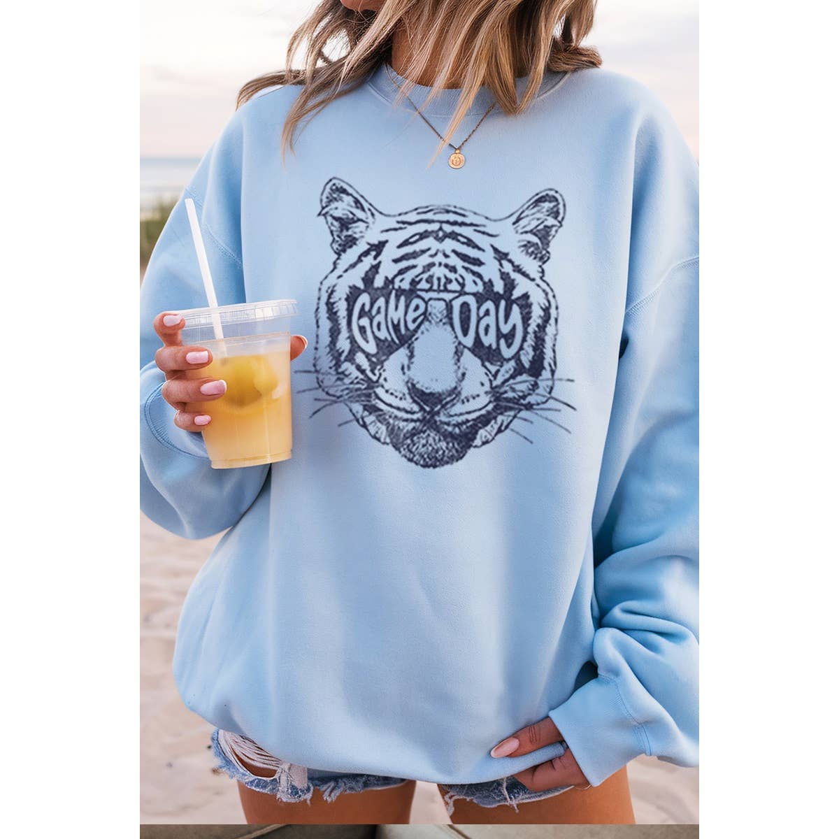Get ready to cheer in style with our Vintage Game Day Tiger Sweatshirt! This cozy, oversized sweatshirt in sandy tones is perfect for crisp fall days and spirited home games. Comfortable and effortlessly cool, it’s your go-to for showing team pride while staying snug and relaxed. Wear it, roar loud, and let the good times roll!