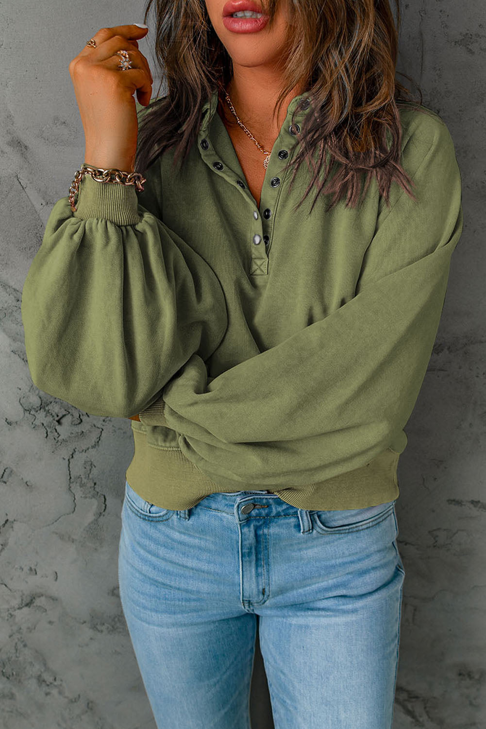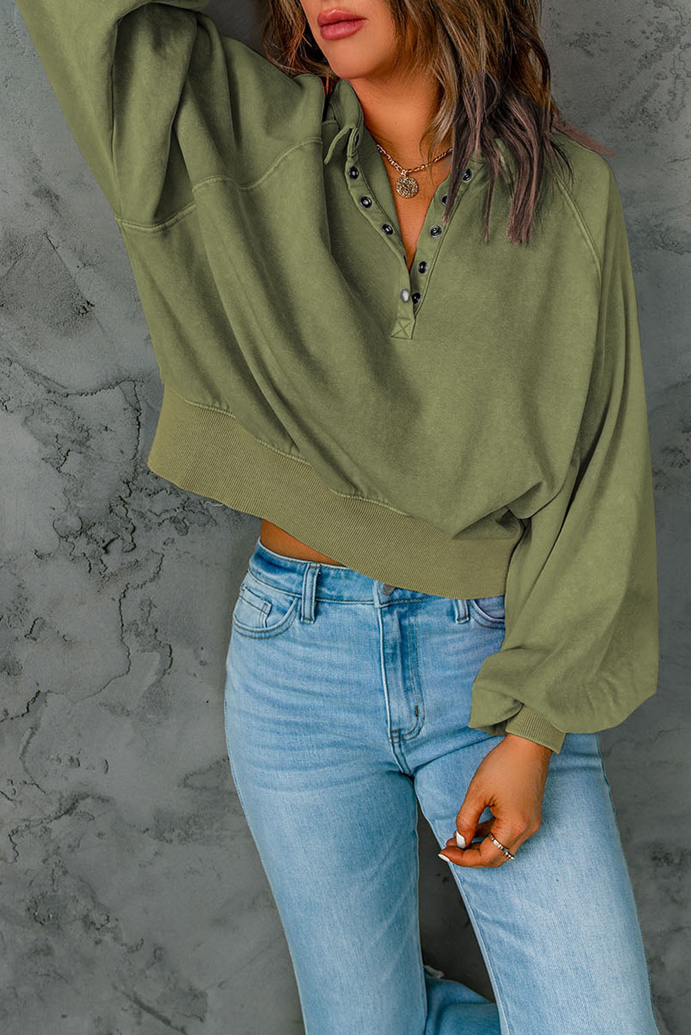Washed Snap Button Pullover Sweatshirt